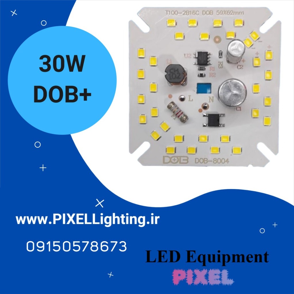 چیپ 30 وات DOB+ دارای دو خازن و بدون فیلیکر میباشد.آیسی این چیپ مجهز به سنسور دما میباشد و با بالا رفتن دما توان چیپ را جهت جلوگیر از سوختن SMDها کاهش میدهد.