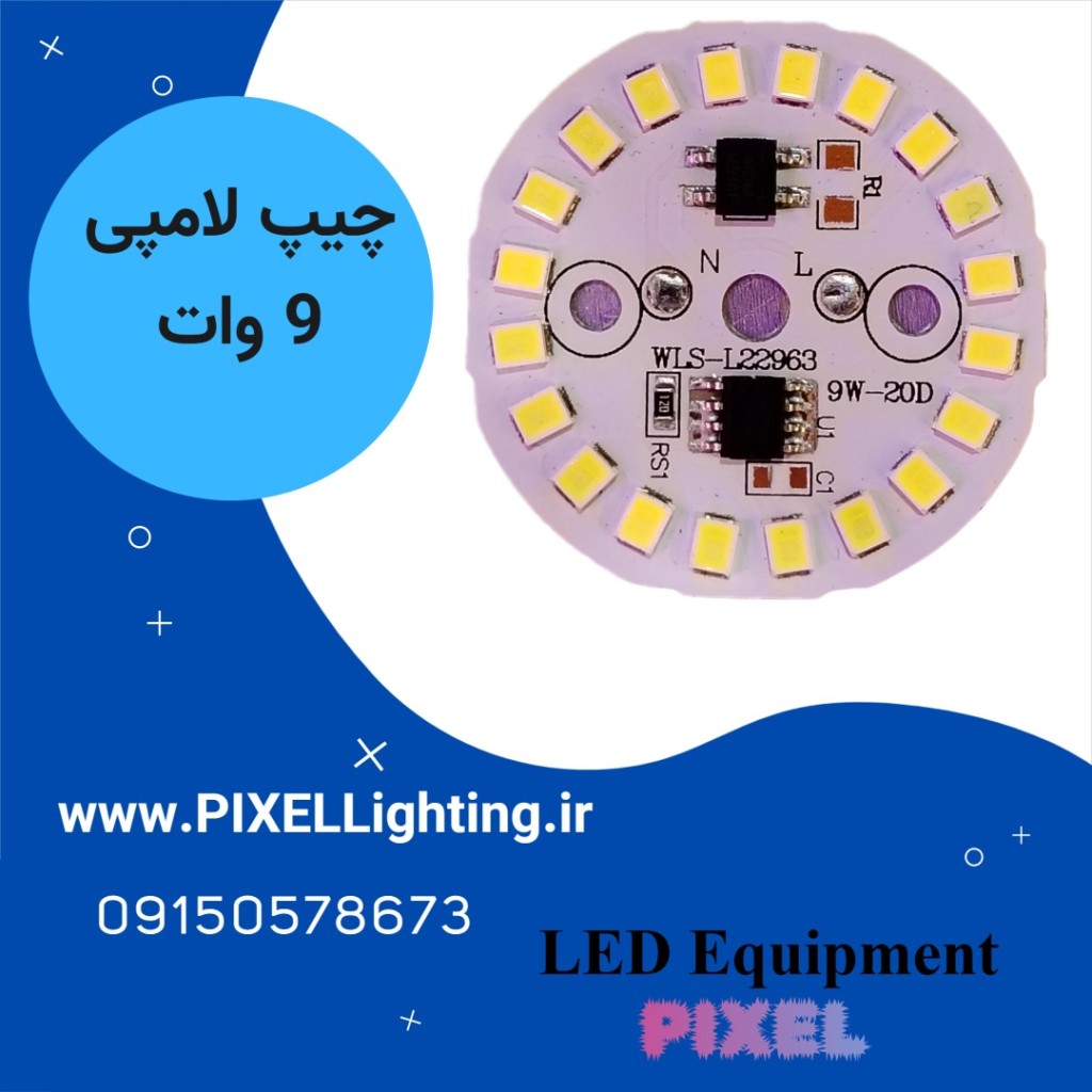 چیپ 9 وات لامپی رنگ نور سفید برق مستقیم